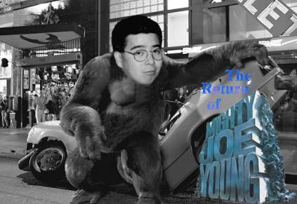 Joe had his first starring role in a "B" movie remake of "Mighty Joe Young". The role seemed to be cast for him - maybe it was because of his unnatural amount of body hair (many costly electrolysis sessions later cleared up this problem up for him). Unfortunately, like Samson, with the loss of his (back) hair came the loss of starring roles.